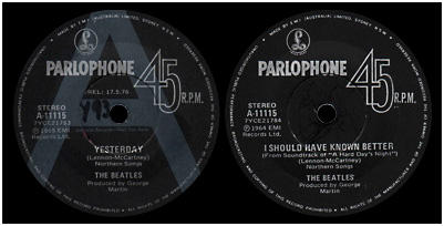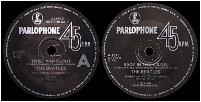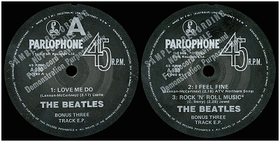 For promo singles issued on the Apple label, EMI (Australia) reverted to affixing the humble red and white bullet sticker to the standard label.